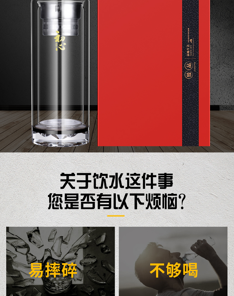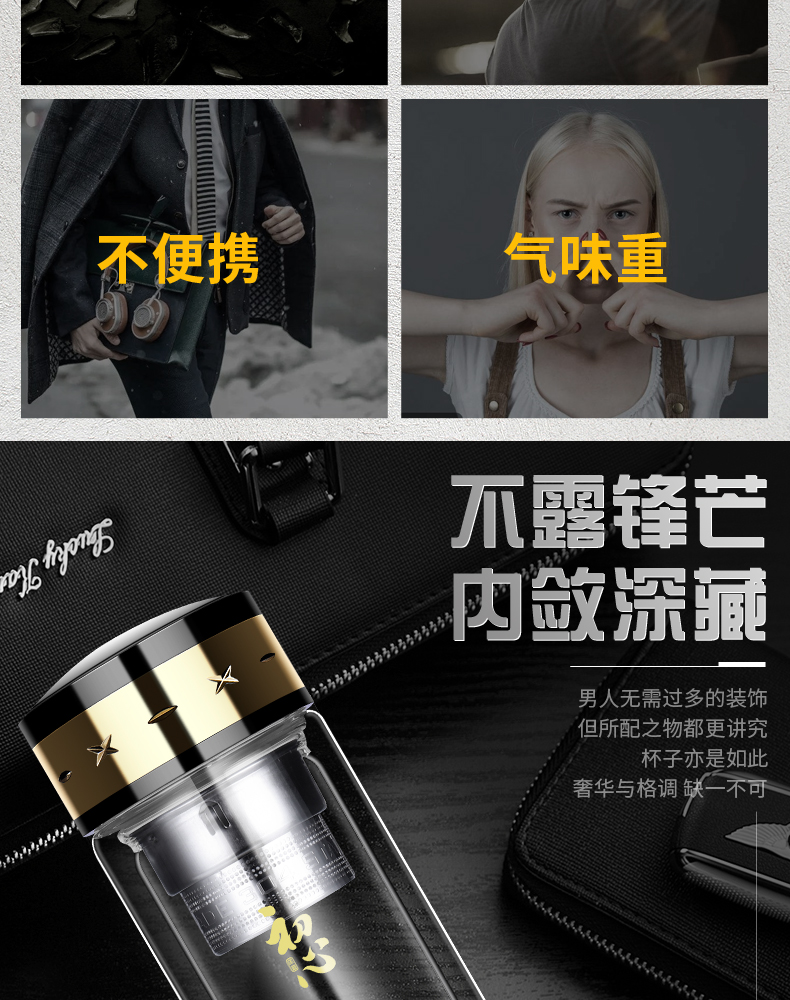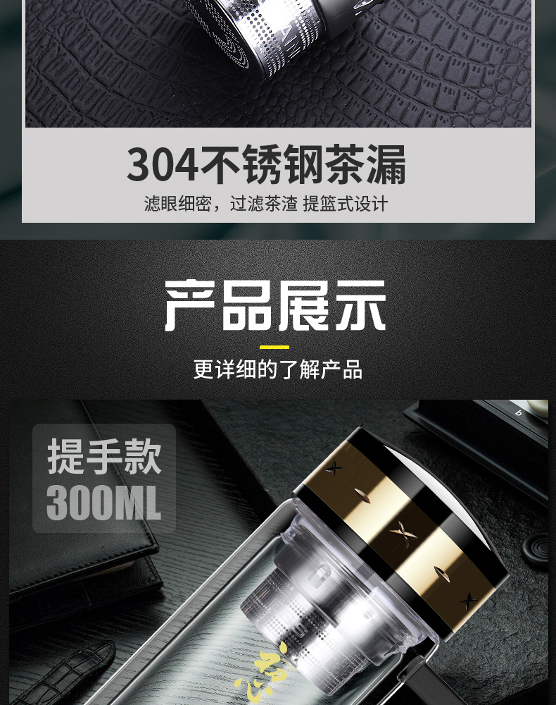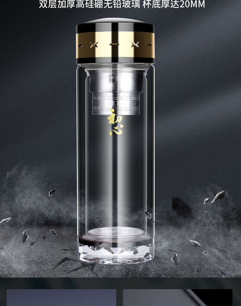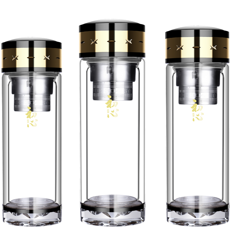 雙層玻璃杯男女便攜茶水分離耐熱加厚大容量高檔茶水杯子定制