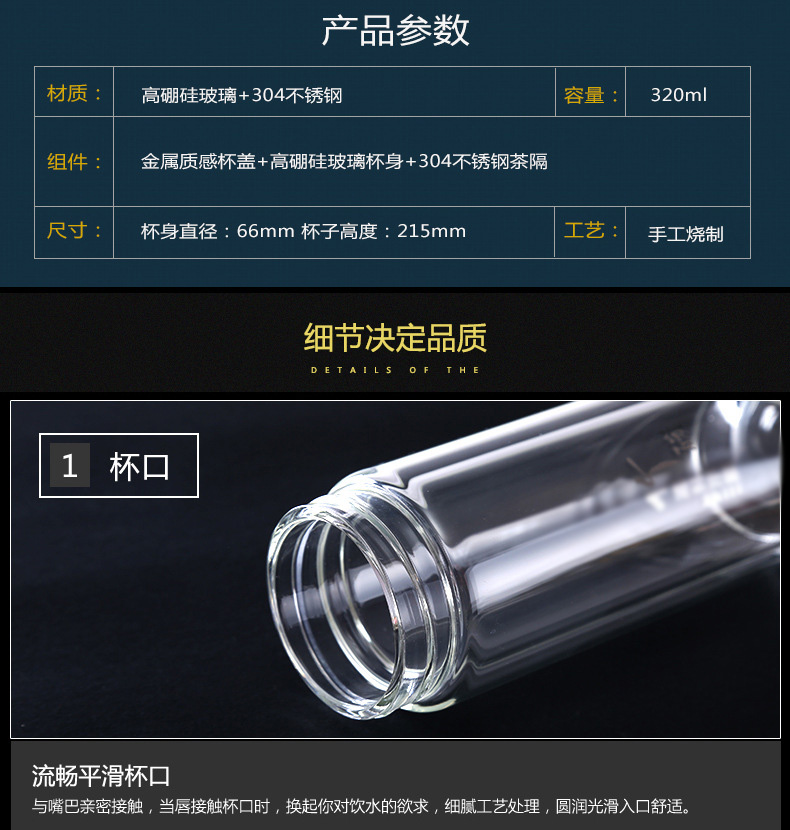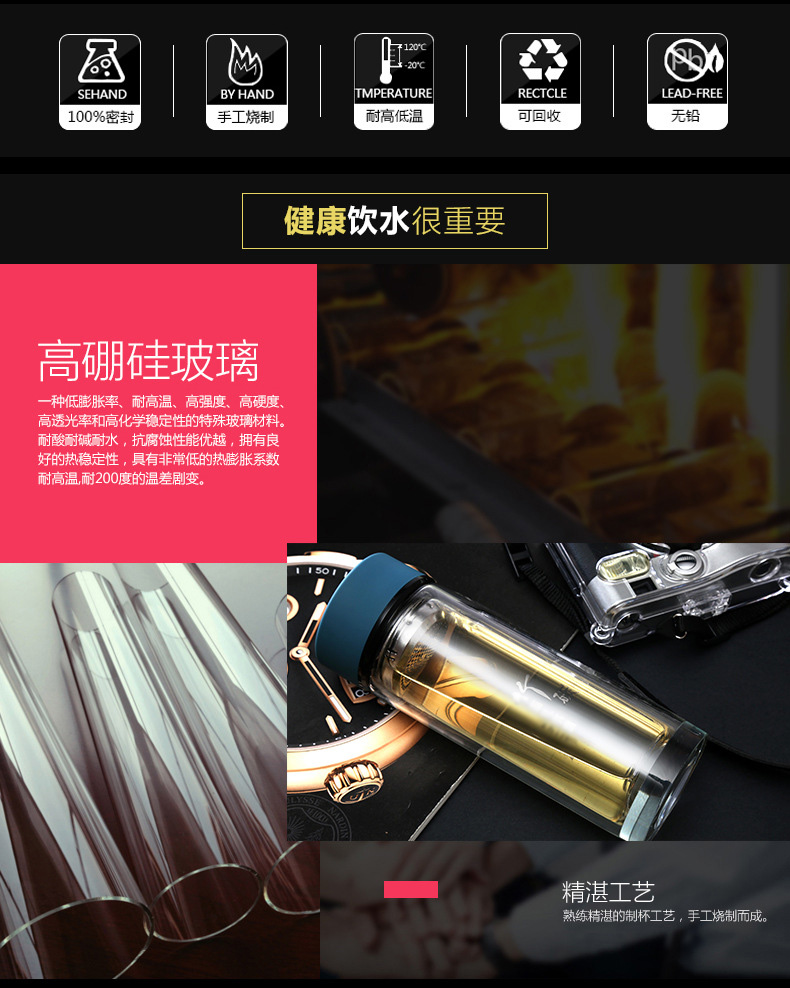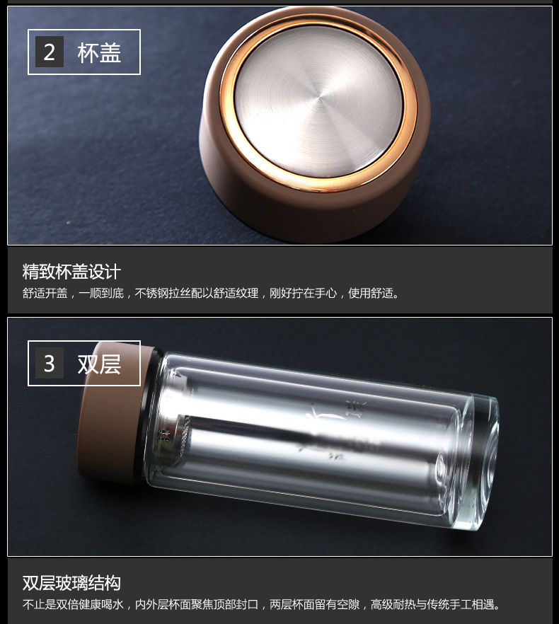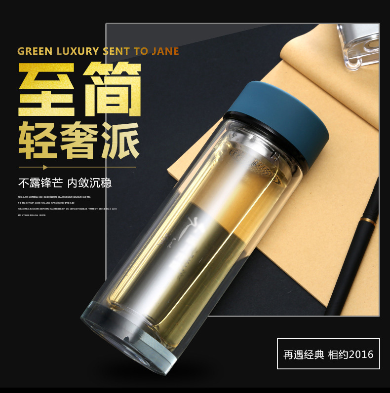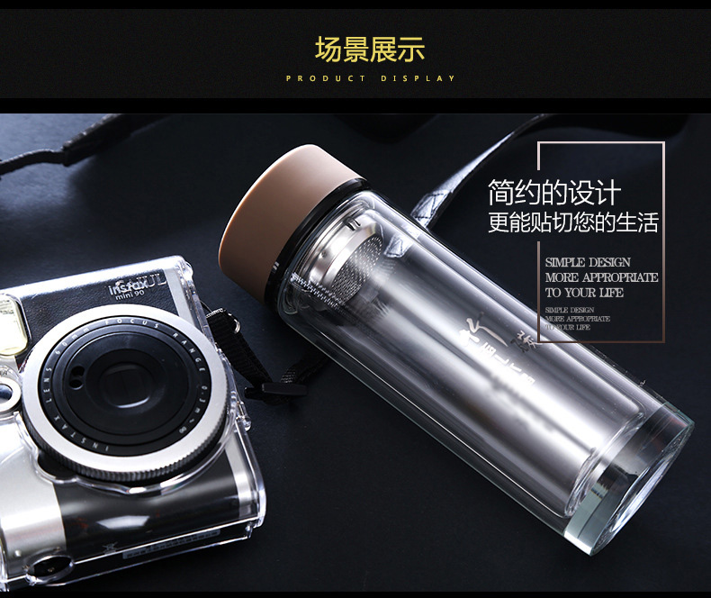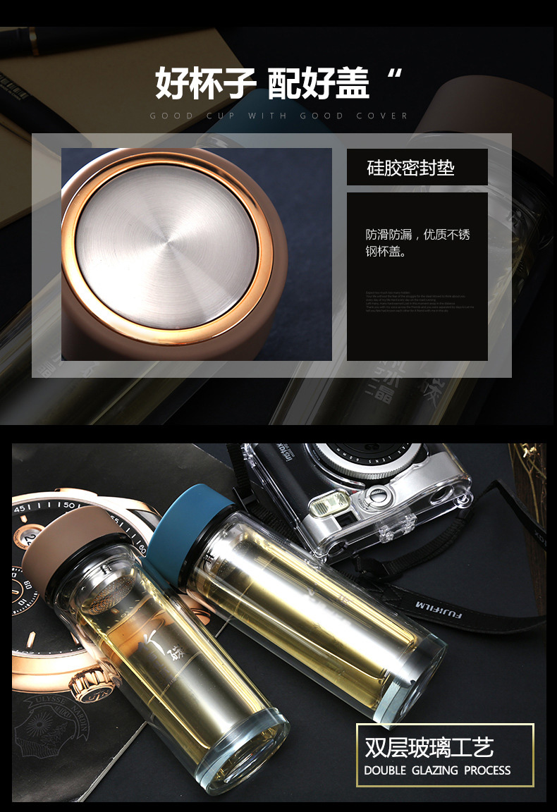 華潤怡寶定做促銷透明水晶杯 茶水分離雙層便攜玻璃杯
