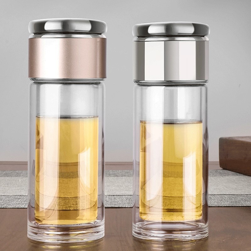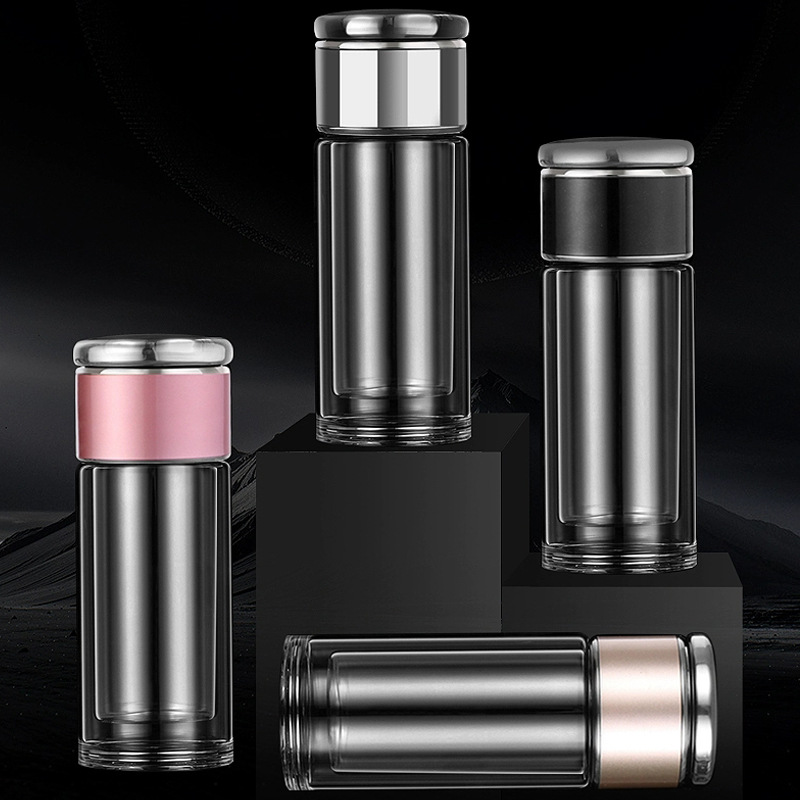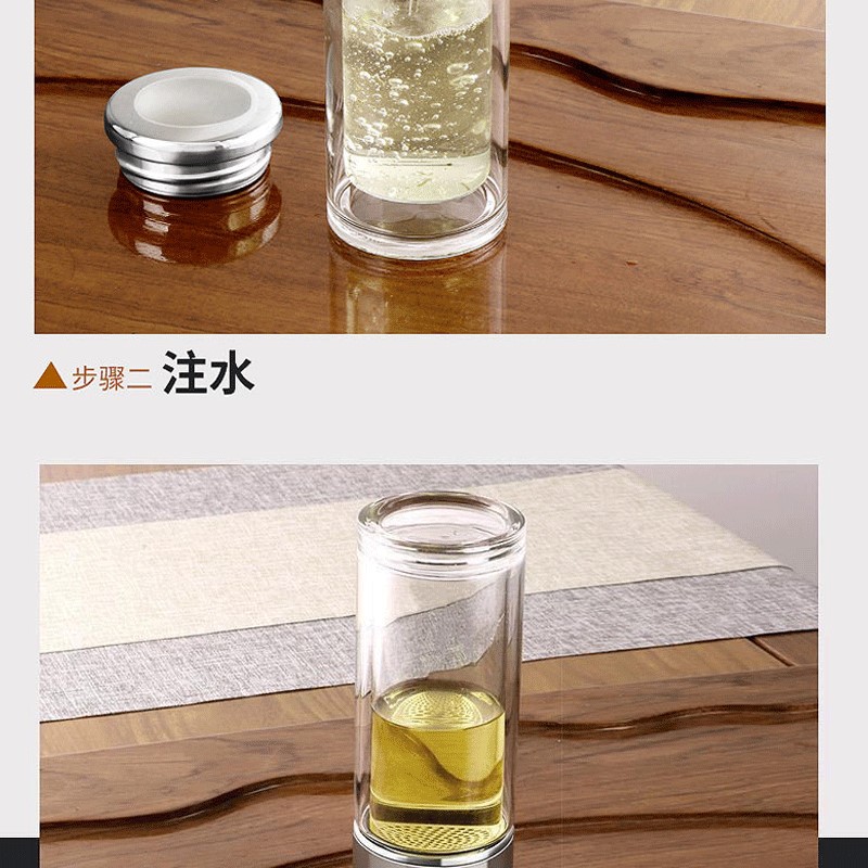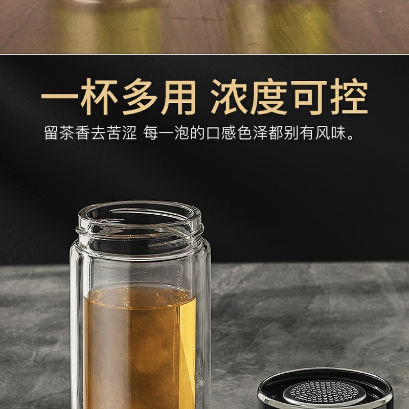 智能顯示雙層茶水分離玻璃杯