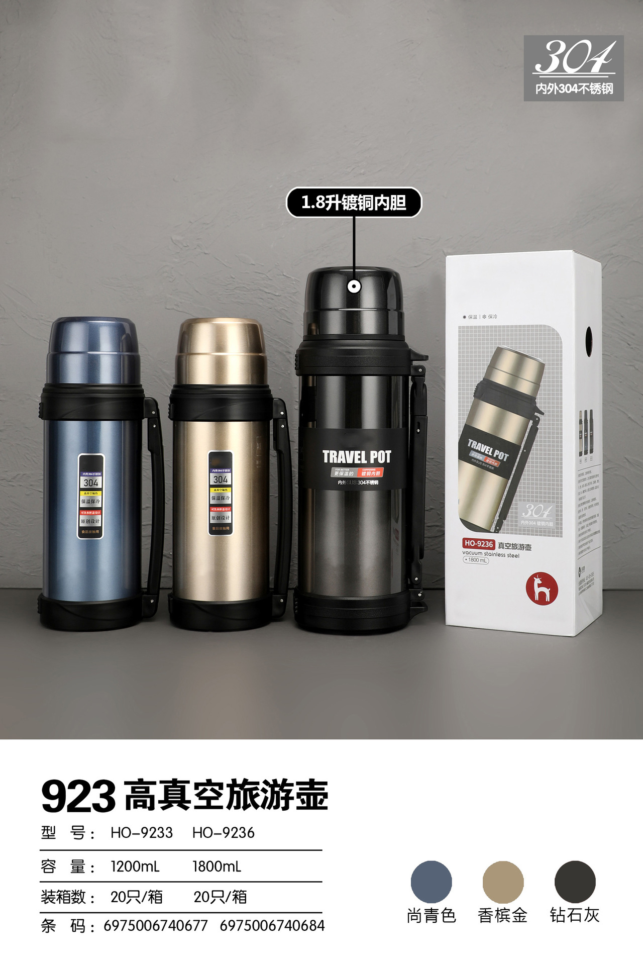 1200ml大容量不銹鋼保溫保冷水壺戶外便攜旅行壺
